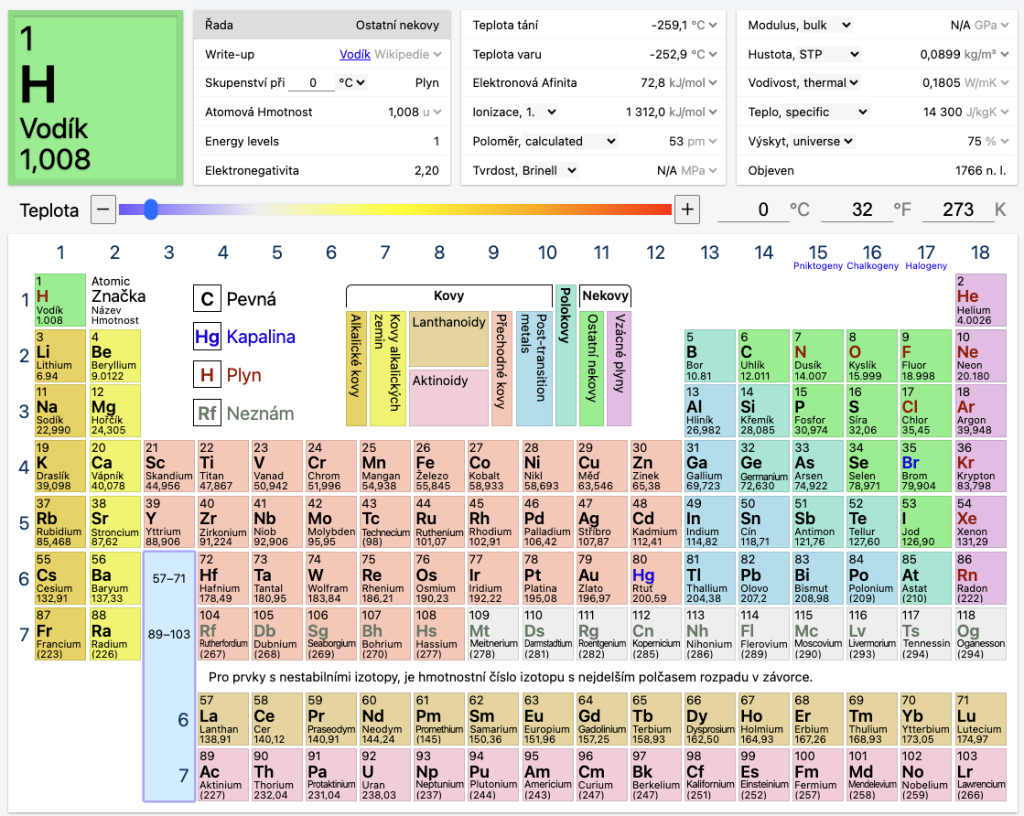 Vynikajícím pomocníkem nejen při výuce chemie je webová periodická tabulka prvků Ptable. Zobrazuje všechny důležité informace, elektronovou konfiguraci i 3D modely atomů. Výbornou funkcí jsou různé druhy grafických zobrazení periodické tabulky, která názorně ukazují určité vlastnosti prvků a souvislosti mezi nimi.